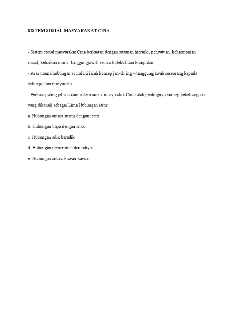 Bangsawan harus diganti dengan hierarki tentera. E.h carr dalam bukunya pernah menyatakan bahawa peperangan menjadi salah satu faktor terbesar. Dari segi hierarki sosial, martabat masyarakat tergolong kpd yg mulia & yg hina. Tamadun china banyak dipengaruhi oleh kebudayaan dalamannya bermula daripada kepelbagaian etnik, perkahwinan, upacara keagamaan , bahasa dan sebagainya. Tamadun islam dan tamadun asia sistem sosial dalam tamadun china golongan legalisme sifat manusia dibicangkan pada lewat zaman chou 1. Artisan, peniaga dan askar menduduki tempat yang paling rendah dalam hierarki masyarakat china. Sial china is an integral part of the sial network, the world largest network of food and drink fairs, to help your food bussiness development. Untuk memilih pegawai kerajaan (birokrasi) sejak zaman dinasti han, sistem peperiksaan awam telah. Unsur tamadun china dapat diringkaskan seperti berikut masyarakat china mempunyai organisasi sosial yang tersusun serta mempunyai lebih daripada 56 etnik. Perkembangan ekonomi tamadun china memberi kesan kepada dunia hari ini dan tamadun china sekarang lebih maju dan produktif dalam ekonomi mereka. • muzik, sejarah dan falsafah merosakkan masyarakat/negara. Tamadun china adalah sebuah tamadun yang lama. Sistem tulisan, kesenian dan kesusasteraan.