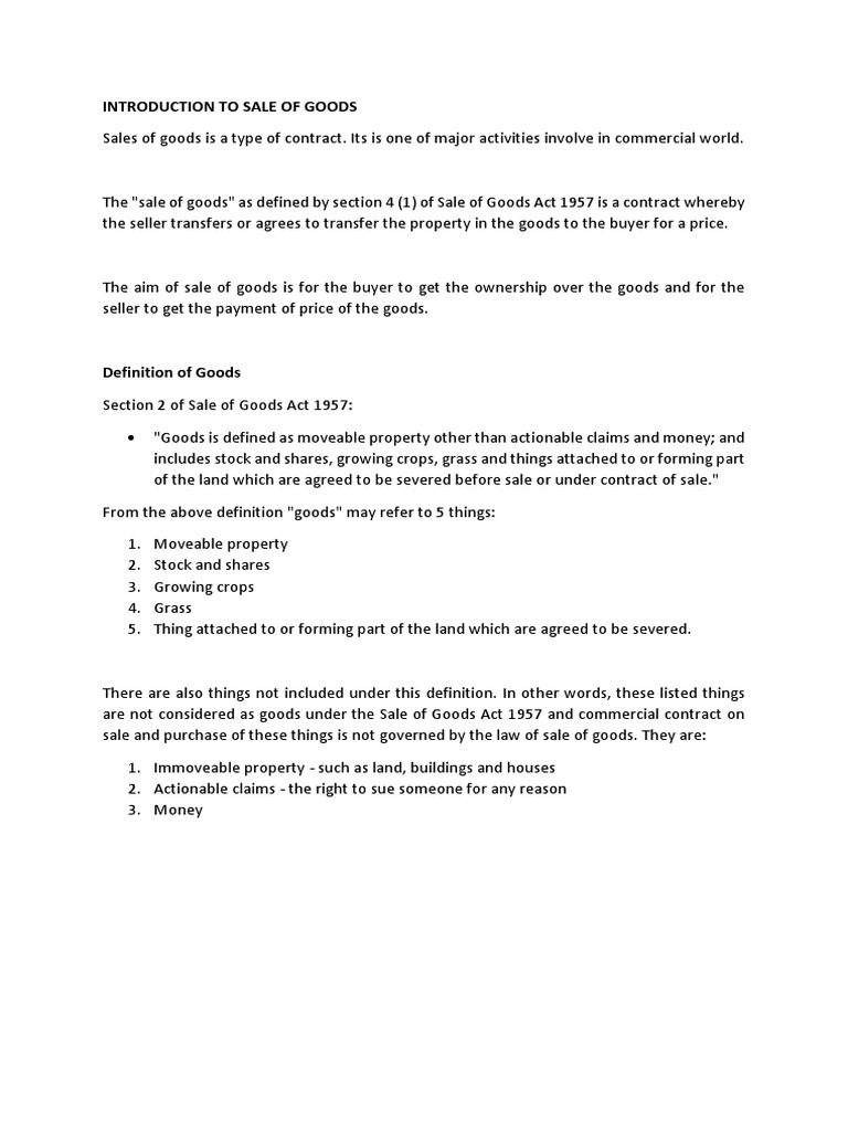 The bill for an act with this short title will have been known as a sale of goods bill during its passage through. Sale of goods act 1957 were applied in malaysia except in the states of penang, malacca, sabah and sarawak. A contract of sale of goods is a contract whereby the seller transfers or agrees to transfer the property in goods to the buyer for price. If these remedies are inappropriate, then you're entitled to a suitable price reduction, or to return the goods and get a. 1 the act serves to protect the consumer who has entered into a contract of sale by providing remedies for the consumer when there is a breach of a.